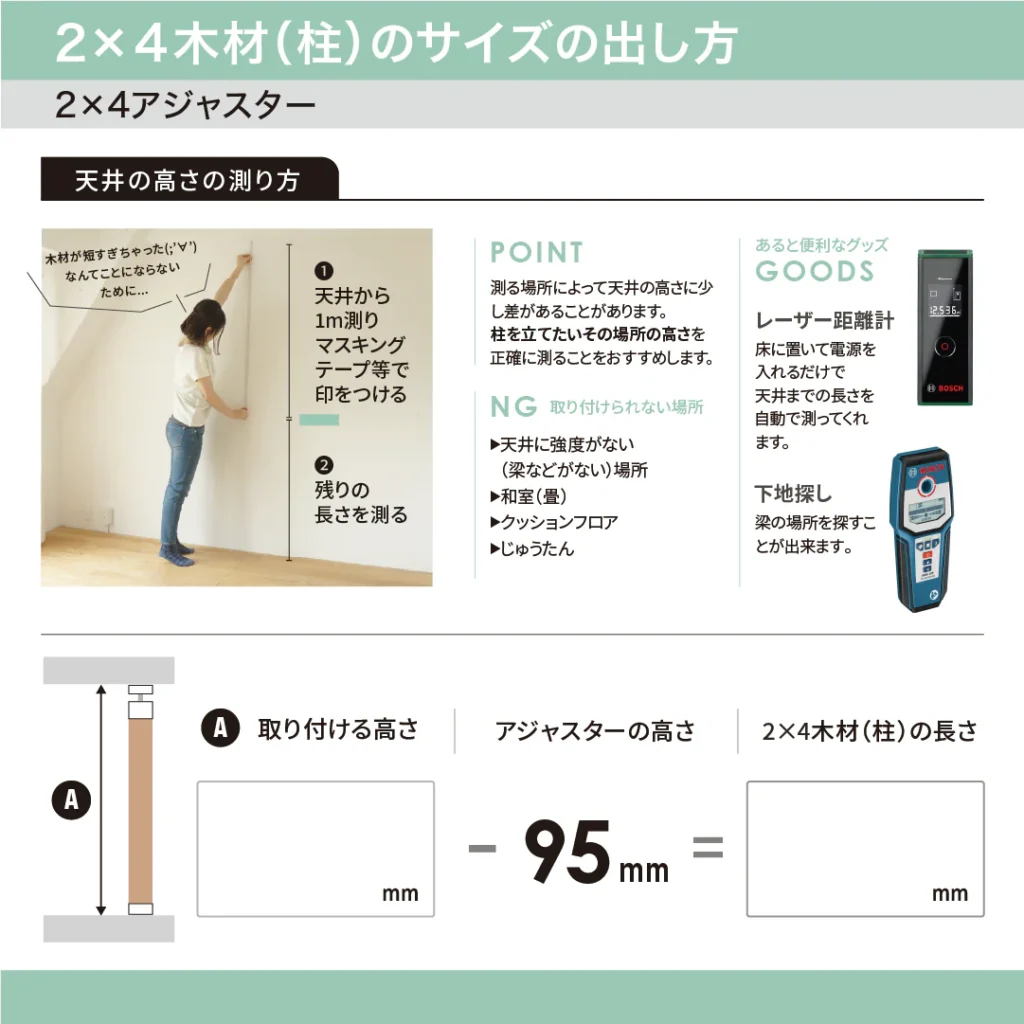 その際、天井までの長さを計測すると思いますが、キッチリと正確に計測しましょう。