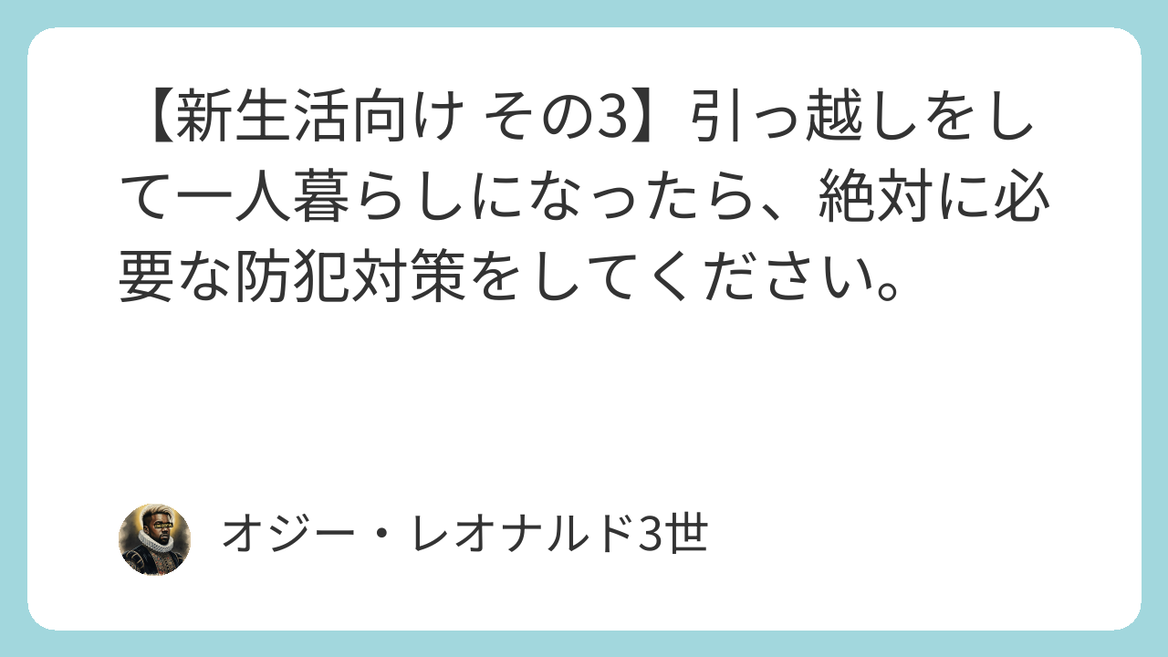 今回は、それらの引っ越し作業を終えてから、是非取り入れてほしい「一人暮らしに絶対に必要な防犯について」を考えていきます。