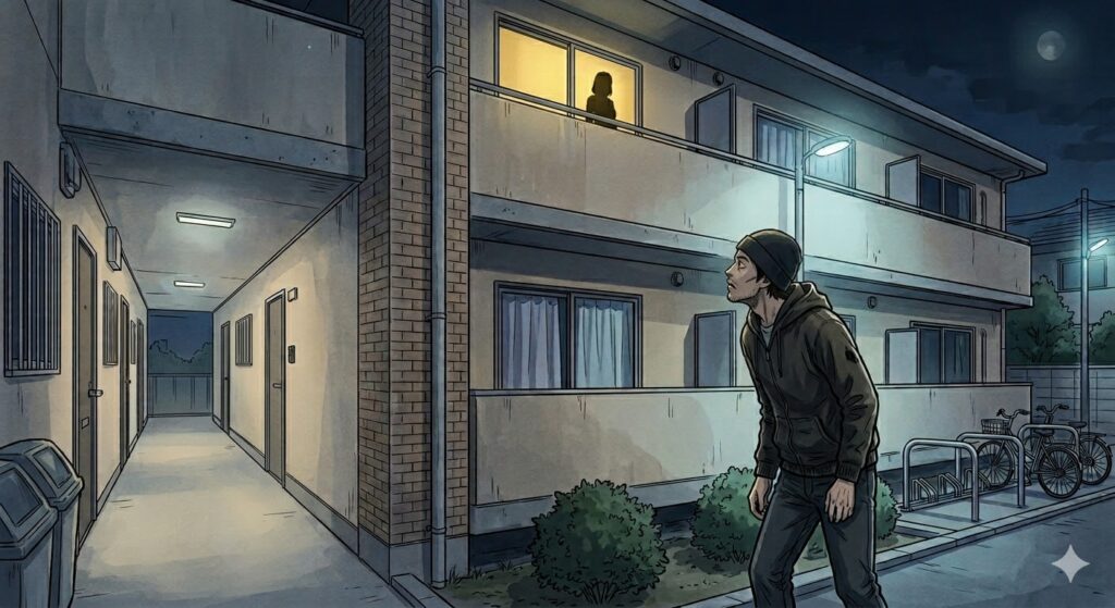 犯人は家に帰ってくるのを息を潜めて待っており、家主が帰宅した際に足音を立てないように近づき、ドアが閉まる前に侵入しました。